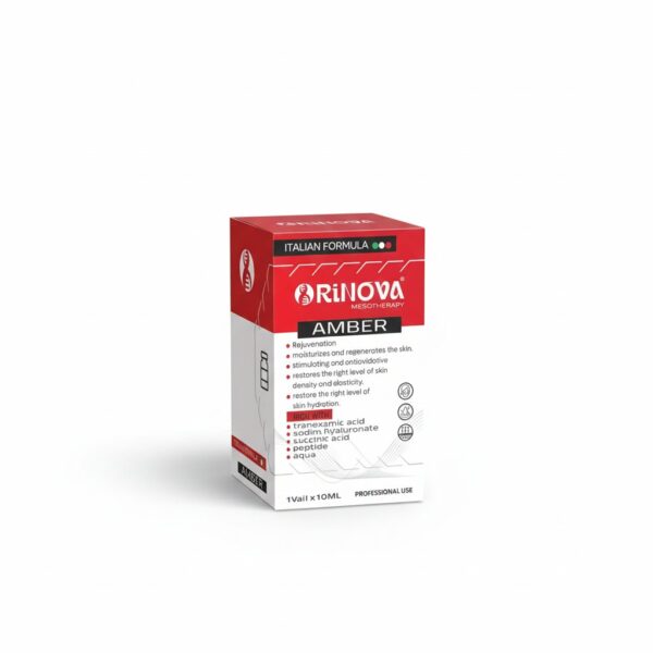 Rinova Amber هو محلول ميزوثيرابي متطور غني بالمكونات النشطة التي تعمل على تجديد خلايا البشرة، ترطيبها بعمق، وشد الجلد بفعالية.
