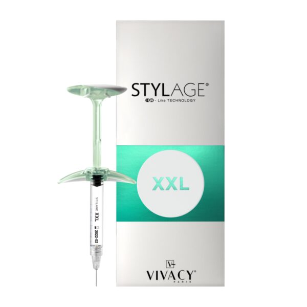 Stylage XXL is a highly cross-linked hyaluronic acid filler designed for significant facial volumization and contouring. Developed by Vivacy Laboratories in France, it is specifically formulated for restoring deep volume loss, reshaping facial features, and providing a more youthful and lifted appearance. The formula includes IPN-Like Technology for enhanced longevity and mannitol, an antioxidant that reduces swelling and protects hyaluronic acid from premature degradation.